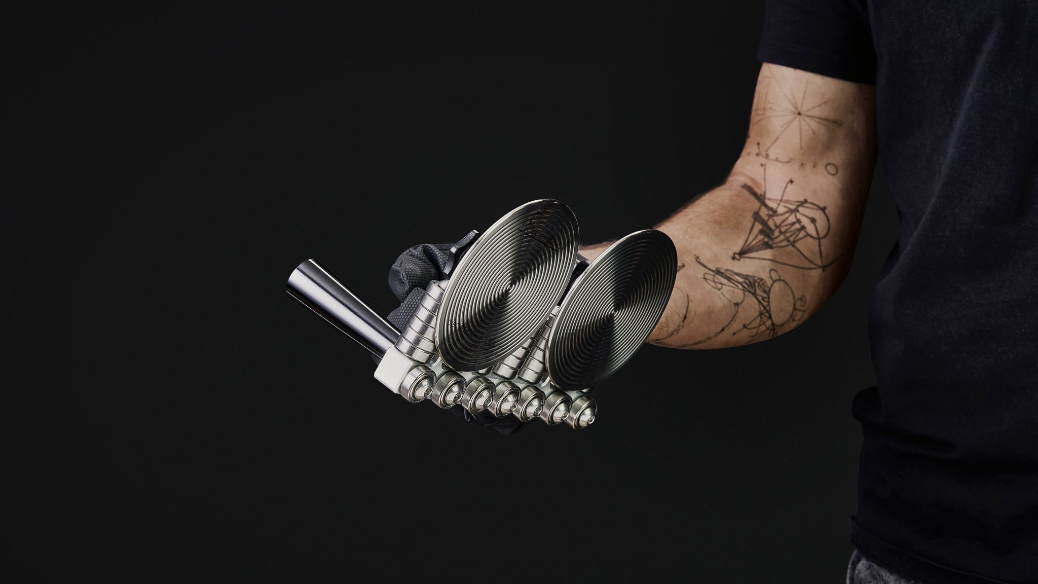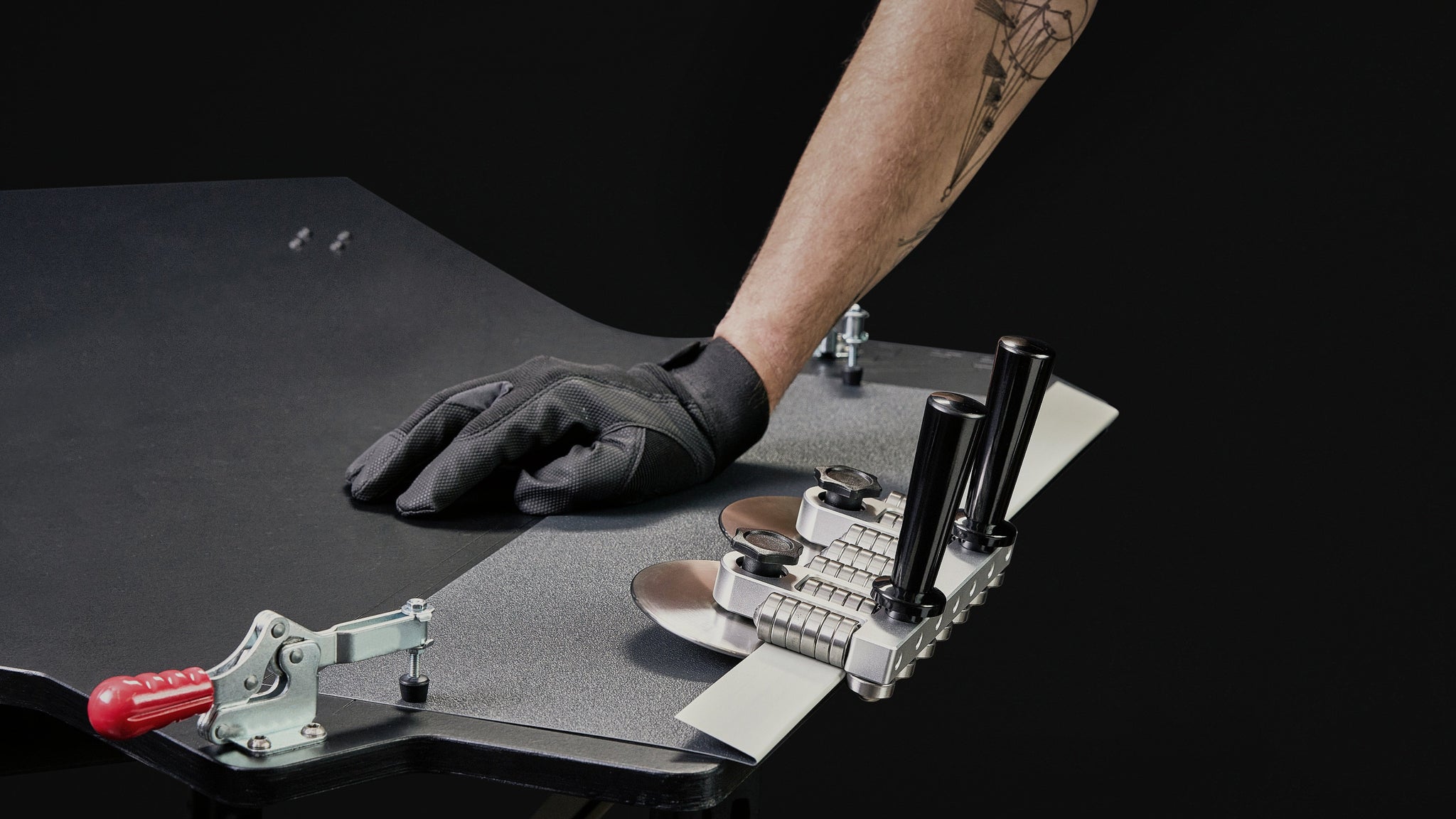 Handy tool for opening hem arches 90°-180° with removable disc for tight spaces.